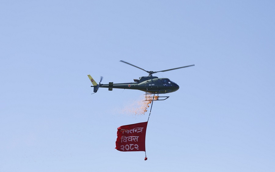 समारोहमा नेपाली सेनाको हेलिकोप्टरबाट गणतन्त्र दिवस–२०८२ अङ्कित ब्यानर प्रदर्शनी र पुष्पवृष्टि गरियो । कार्यक्रममा विविध साँस्कृतिक झाँकी प्रदर्शन र नेपाली सेना, नेपाल प्रहरी, सशस्त्र प्रहरी बल, नेपालबाट मार्चपास प्रस्तुत भयो ।