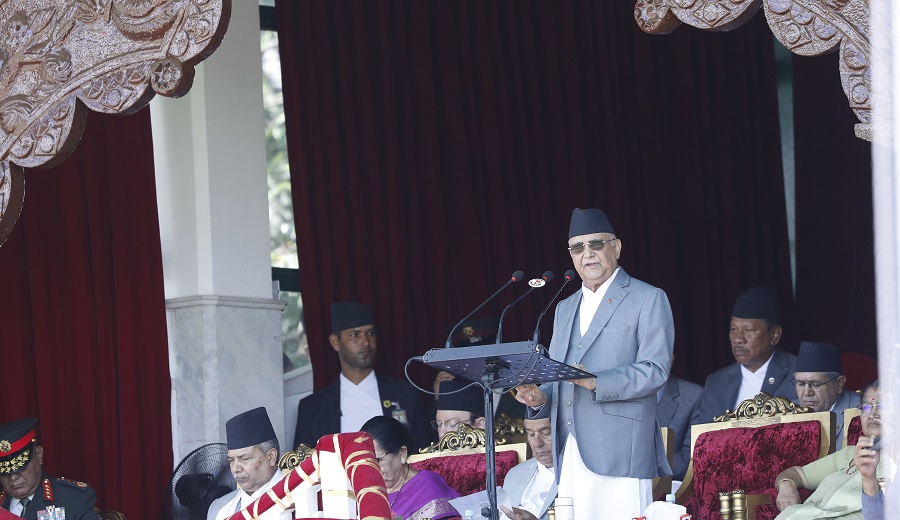 गणतन्त्र दिवसका २०८२ को उपलक्ष्यमा टुडिँखेलमा ओयोजित विशेष समाराहलाई सम्बोधन गर्दै प्रधानमन्त्री ओलीले हरेक नागरिकको आत्मससम्मान सुरक्षित रहने गणतन्त्रान्त्रिक व्यवस्थाको विकल्प अरु हुननसक्ने बताए। गणतान्त्रिक शासन व्यवस्थामा शिक्षा, स्वास्थ्य, उद्यम, रोजगारी पूर्वाधार लगायतका क्षेत्रमा अतुलनीय उपलब्धिसहित परिवर्तन भएको उल्लेख गर्दै उनले गणतन्त्रलाई अझ सुदृढ र बलियो बनाउन हामी सबै एक हुनुपर्नेमा जोड दिए।