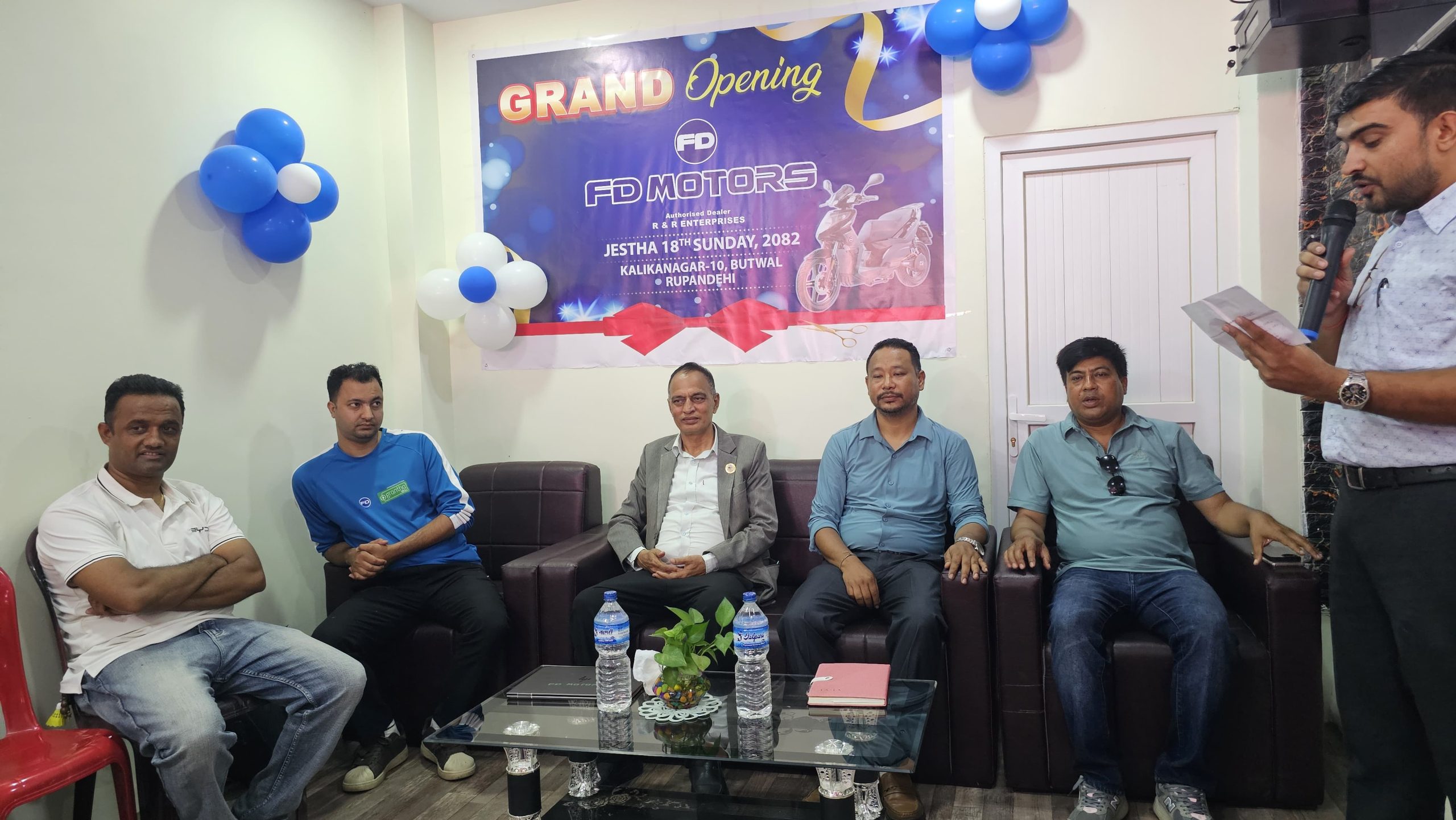 एफडी मोटर्सको छैटौँ शाखा बुटवलको कालिकानगरमा शुभारम्भ, ‘एफ-५ ए प्रो’ स्कुटर सार्वजनिक