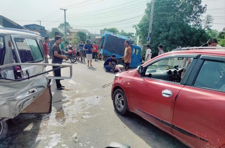 बुटवलबाट बिरामी बोकी नारायणघाटतर्फ गइरहेको ना ४ च १६४६ नम्बरको एम्बुलेन्स र रजहर चोकबाट दुम्कौलीतर्फ आइरहेको दिव्य एकेडेमी बोर्डिङ स्कुल, केउरेनीको बा २० च ७२ नम्बरको स्कुल भ्यान बिहान एक आपसमा ठोक्किएका हुन्।