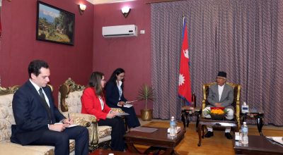 राष्ट्रपति कार्यालय शीतल निवासमा भएको भेटमा दुई देशबीचको द्विपक्षीय सम्बन्ध, आपसी हित र चासोका विविध विषयमा विचारविमर्श भएको राष्ट्रपतिको कार्यालयले जनाएको छ ।