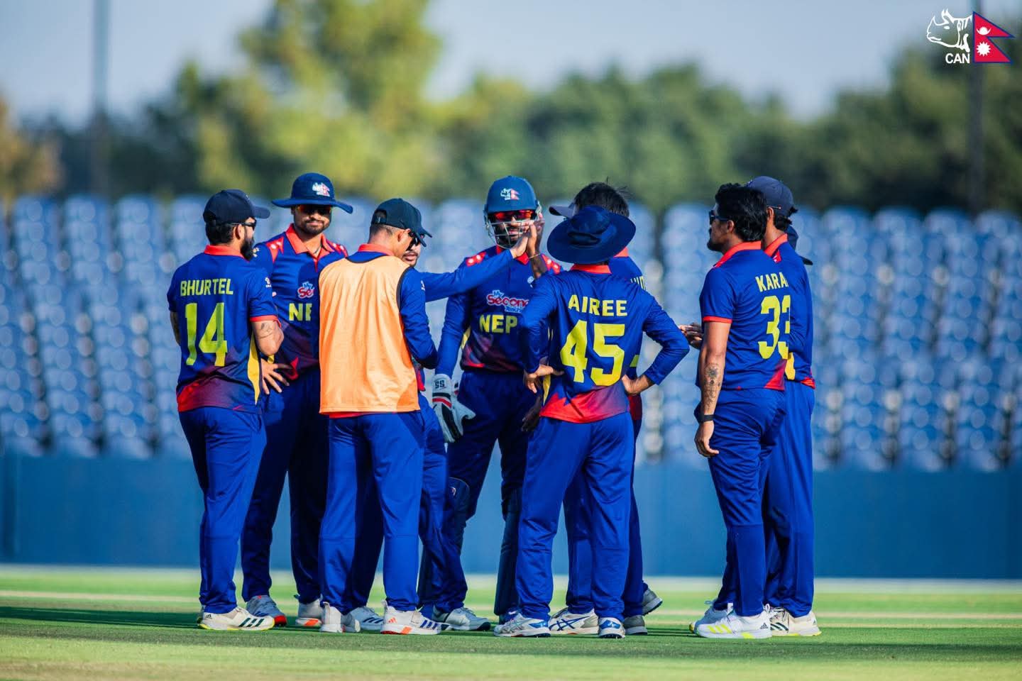 चार्ली टेयरले ६५ बलमा नौ चौकाको सहयोगमा ६८ रन जोडे । त्यसैगरी, मार्क वाटले अविजित २१ र फिनले म्याकक्रियाथले १७ रन बनाए । नेपालका लागि करण केसी र दीपेन्द्रसिंह ऐरीले समान दुई–दुई विकेट लिए भने ललितनारायण राजवंशीले एक विकेट लिए । नेपाल अहिले जवाफी ब्याटिङमा उत्रेको छ ।