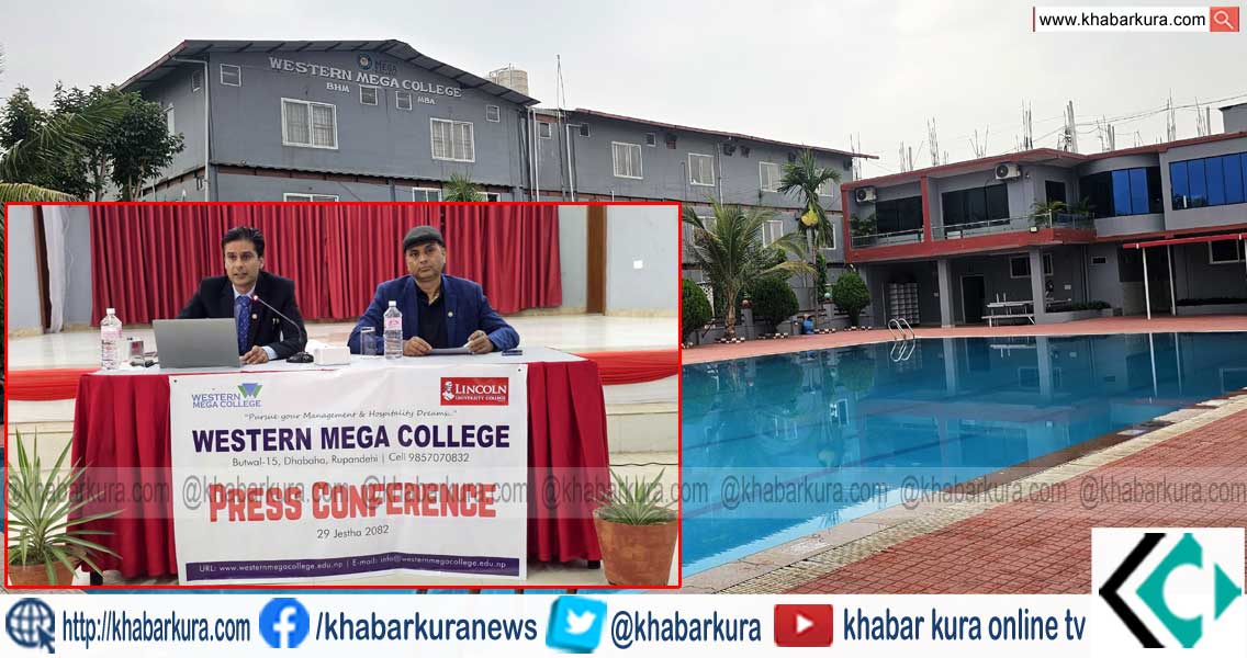 बुटवल । होटल व्वस्थापनमा नाम कमाएको रुपन्देहीको वेष्ट्रन मेघा कलेज ढवाहाले नयाँ शैक्षिकसत्रसंगै विविध कार्यक्रम गर्ने भएको छ । विहिबार कलेज परिसरमा पत्रकार सम्मेलन गरि नयाँ शैक्षिक सत्रको शुरुवातसंगै १० दिने नि:शुल्क होटल व्यवस्थापन तालिम, फुड फेस्टिवल तथा बिएचएमको नयाँ भर्ना समेत खुलाईएको कलेजका प्राचार्य अधिवक्ता किसु शर्माले बताए । असार १ गतेबाट नि:शुल्क तालिम हुने उनले बताए ।