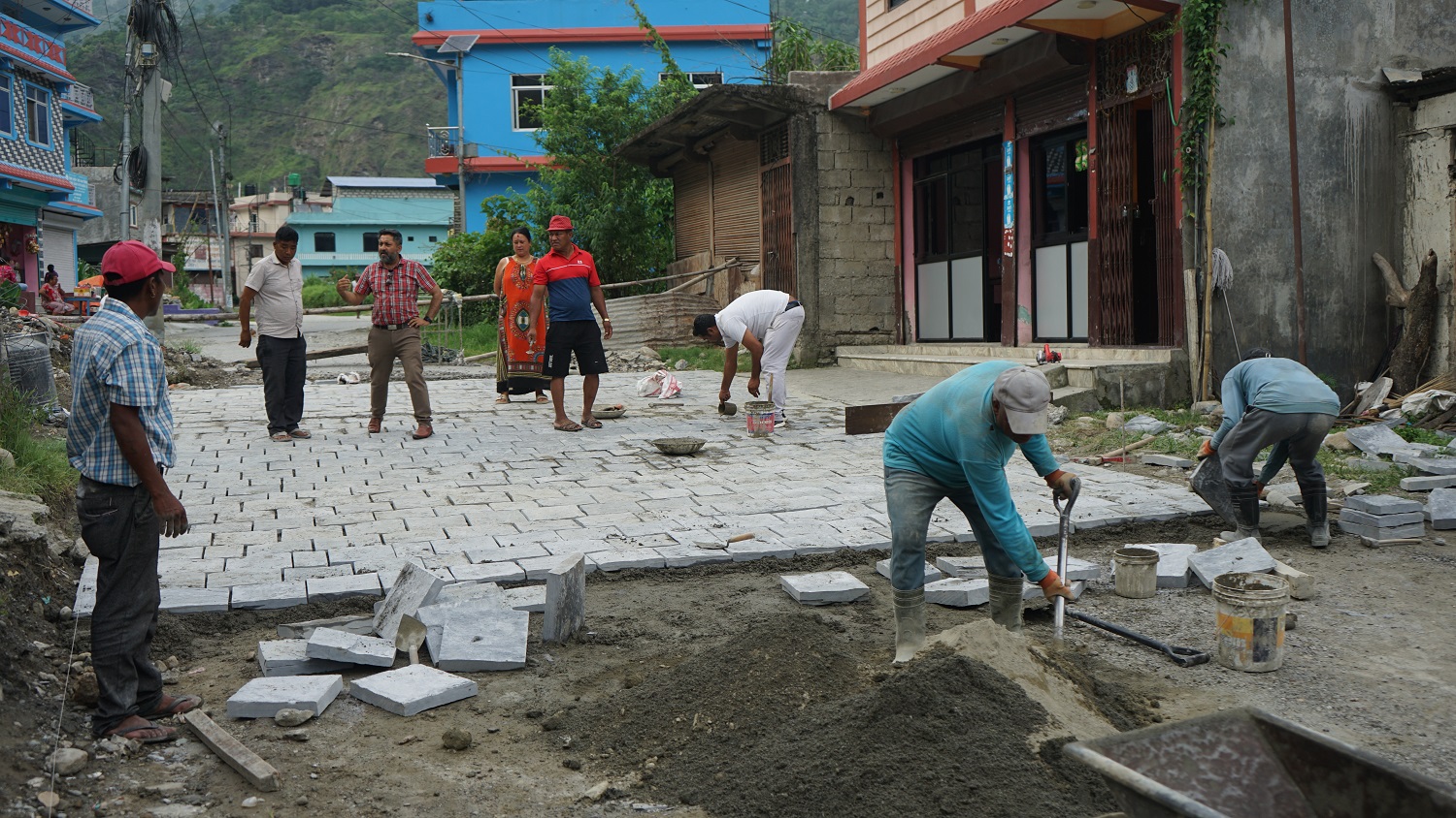 म्याग्दी । बेनी नगरपालिका-९ स्थित म्याग्दीको प्रमुख धार्मिक पर्यटकीयस्थल गलेश्वरको सौन्दर्यीकरणका लागि बजारभित्रको सडकमा ढुङ्गा बिछ्याउन थालिएको छ ।