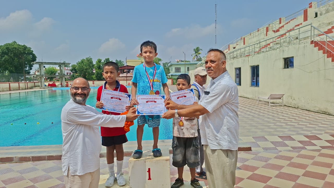 नेपालगन्ज । पूर्व खेलाडी समाज बाँकेको आयोजनामा तथा नेपालगन्ज उपमहानगरपालिका वडा नं. २ को सहयोगमा आयोजित “प्रथम वडा कप अन्तर विद्यालय पौडी प्रतियोगिता–२०८२” सम्पन्न भएको छ । शनिबार नेपालगन्ज रंगशालास्थित पौडी पोखरीमा प्रतियोगिता सम्पन्न भएको हो।