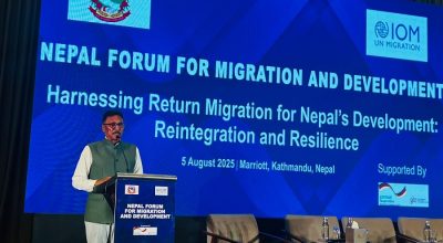 अगाडि उनले थपे, ‘नेपालीहरु केवल बैदेशिक रोजगारमा जाने मात्रैहरुको लर्को मात्रै छैन, वैदेशिक रोजगारमा गएकाहरु सीप, ज्ञान, थोरै भएपनि पुँजी लिएर फर्केर आउनेहरुको संख्यामा पनि उत्तिकै छन् ।’