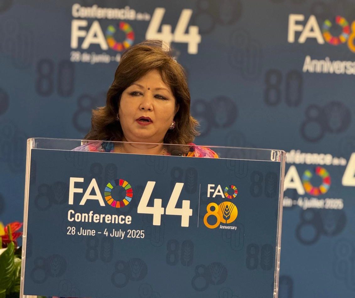 रोममा आयोजित राष्ट्रसङ्घीय खाद्य तथा कृषि सङ्गठनको ४४ औँ महासभालाई सोमबार सम्बोधन गर्दै उनले जलवायु परिवर्तनको मार खेपिरहेका नेपाल र यहाँका विशेषगरी हिमाली क्षेत्रका लागि अनुदानमा आधारित अन्तरराष्ट्रिय जलवायु वित्त सुनिश्चित गर्न आग्रह गरिन ।