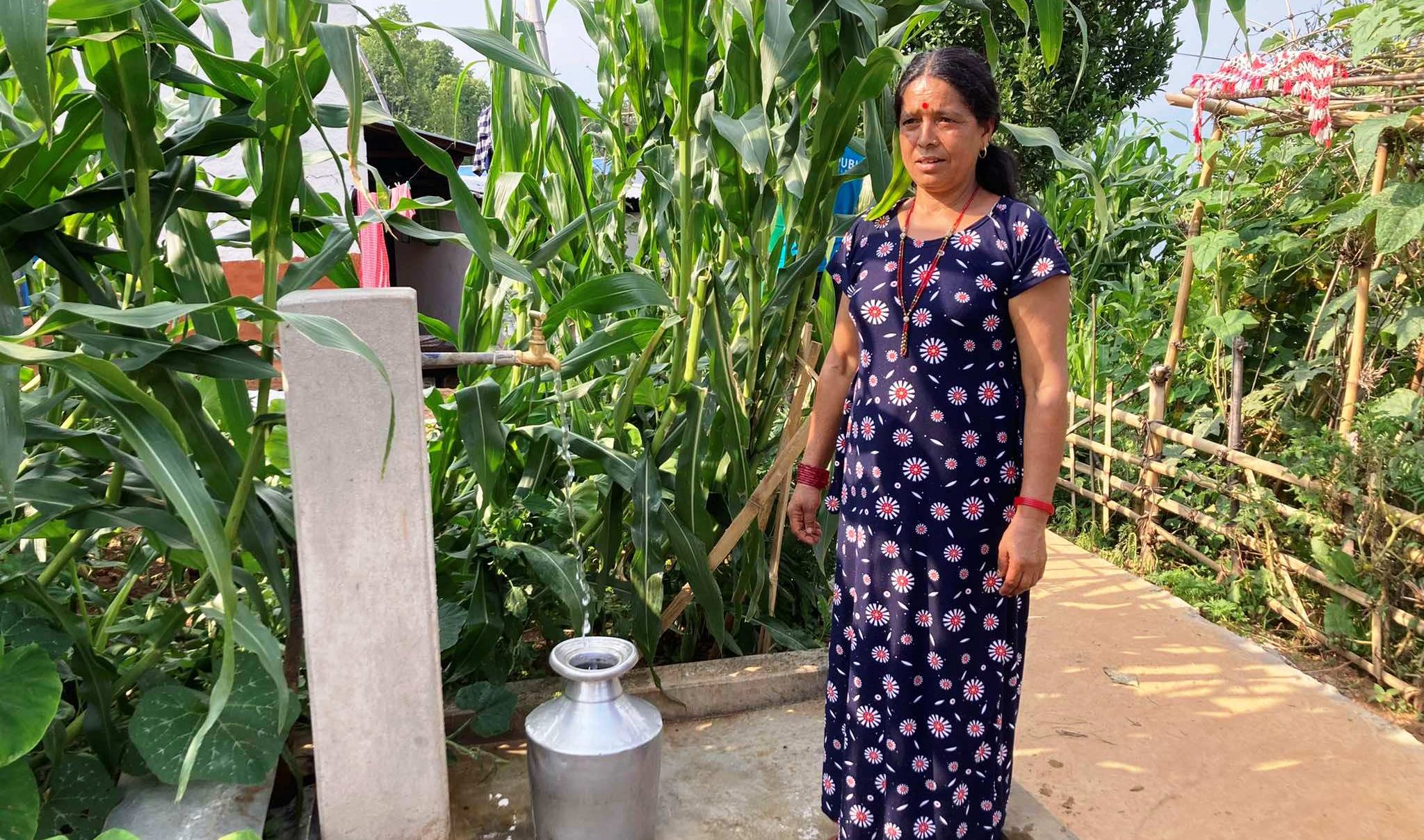 बागलुङ । तीन महिना अघिसम्म खानेपानी बोकेर घरमा ल्याउँदै आएकी जिल्लाको बागलुङ नगरपालिका-१२ अमलाचौरको रुम्टा गाउँकी चित्रदेवी सापकोटा अहिले घरमै खानेपानीको सुविधा हुँदा दङ्ग छिन ।