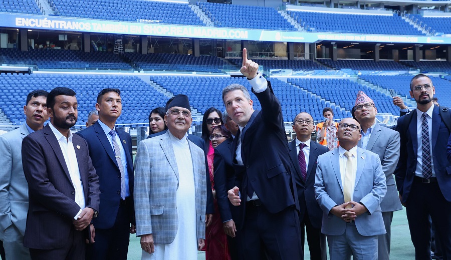 प्रधानमन्त्री ओलीबाट रियल मेड्रिडको रङ्गशाला अवलोकन