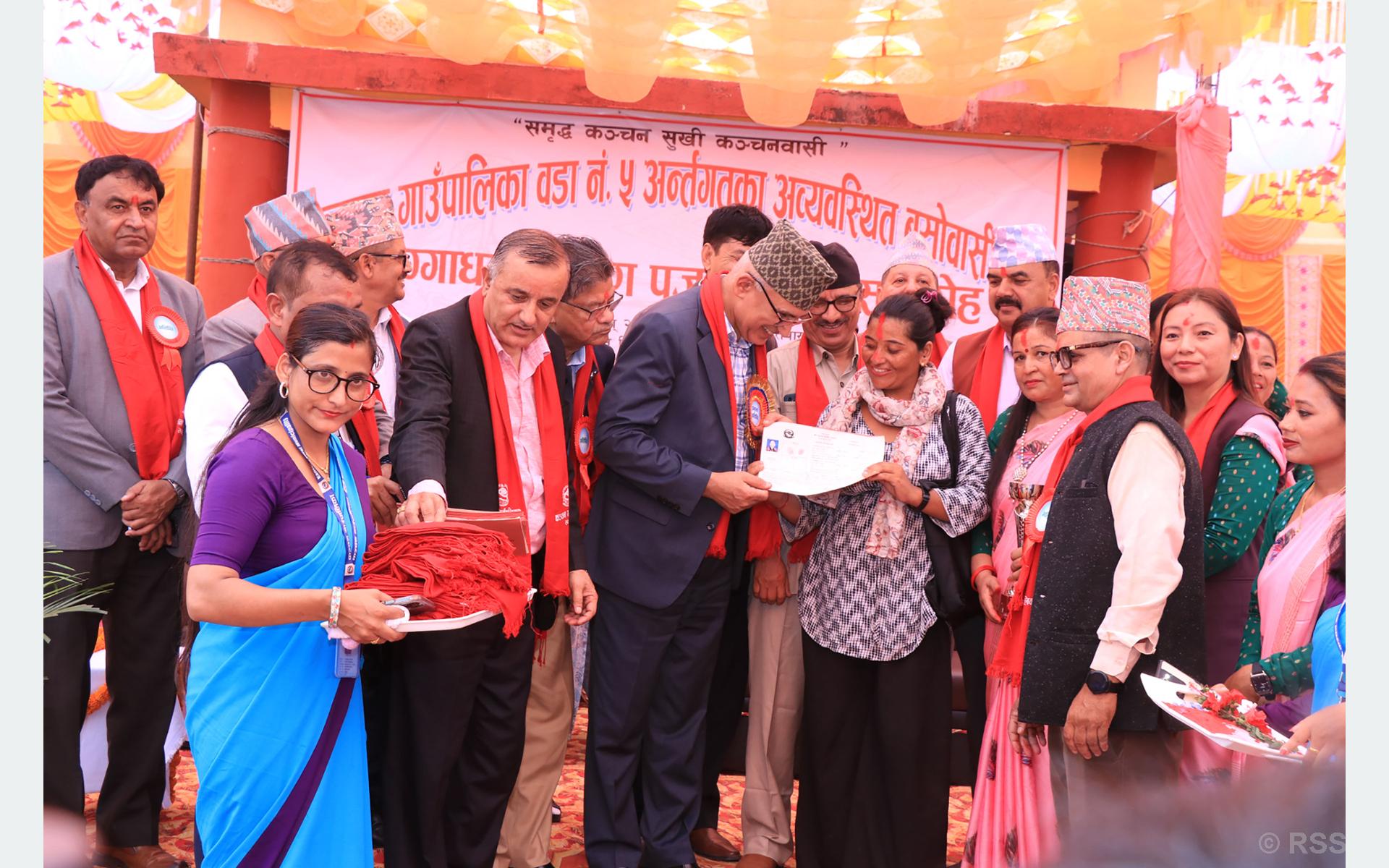 जिल्ला भूमि समस्या समाधान आयोगका अध्यक्ष कुमार थापाले प्रक्रिया पूरा गरेर ती सबै परिवारलाई क्रमशः पुर्जा वितरण गरिने जानकारी दिए । आयोगले स्थानीय पालिकासँगको समन्वयमा गाउँपालिका परिषरमा विशेष समारोहको आयोजना गरी पाध्यासहितका चार सय ३० परिवारलाई एकैदिन जग्गाधनी पुर्जा दिइसकेको उनले बताए ।