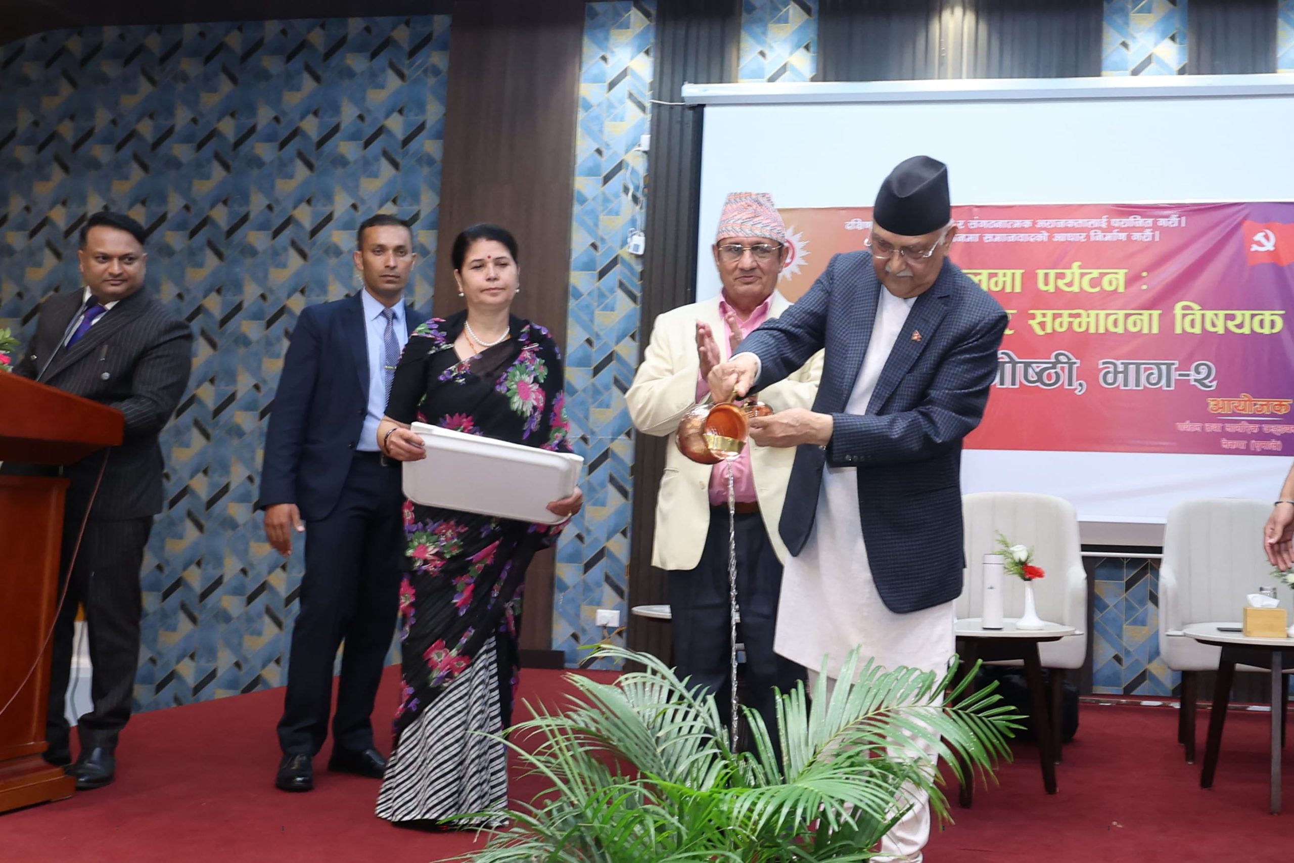 पार्टीको केन्द्रीय पर्यटन तथा नागरिक उडड्यन विभागद्वारा आज यहाँ आयोजित ‘नेपालमा पर्यटनः अवस्था, चुनौती र सम्भावना’ विषयक राष्ट्रिय गोष्ठीमा उहाँले नेपाल पर्यटन बोर्ड, पर्यटन विभागजस्ता संस्थाबाट परम्परागत शैलीमा नभई आधुनिक (डिजिटल) शैलीमा नेपालका वैभव र रमणीय स्थलबारे आक्रामक प्रचार हुनुपर्नेमा जोड दिए ।