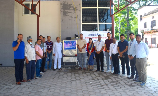 काठमाडौं । माछापुच्छ्रे बैंकले सुदुरपश्चिम प्रदेशमा रहेको महाकाली प्रादेशिक अस्पताललाई बैंकको संस्थागत उत्तरदायित्व अन्तर्गत वाटर चिलर हस्तान्तरण गरेको छ ।