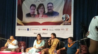 काठमाडौंमा शनिबार आयोजित ‘अनाम प्रत्यक्ष गजल गायन, २०८२’मा विश्वकीर्तिमानी संगीतकार सन्तोष श्रेष्ठले एकल संगीत र स्वरमा ७ जना गजलकारका ७ वटा गजल गाए ।