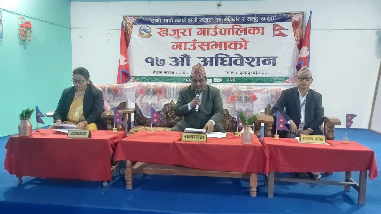 खजुरा । कुल बजेटको ७० प्रतिशत बजेट वडाहरुलाई दामासाहीले बितरण गर्दै बाँकेको खजुरा गाँउपालिकाको आव २०८२/८३ को बजेट पारित भएको छ । गाउँसभाको बैठकमा पालिका अध्यक्ष मन्जु मल्लले प्रस्ताव गरेको ८५ करोड ७२ लाख ३१ हजारको अनुमानित आय ब्यय गाँउसभाबाट सर्वसम्मतथ पारित भएको हो ।