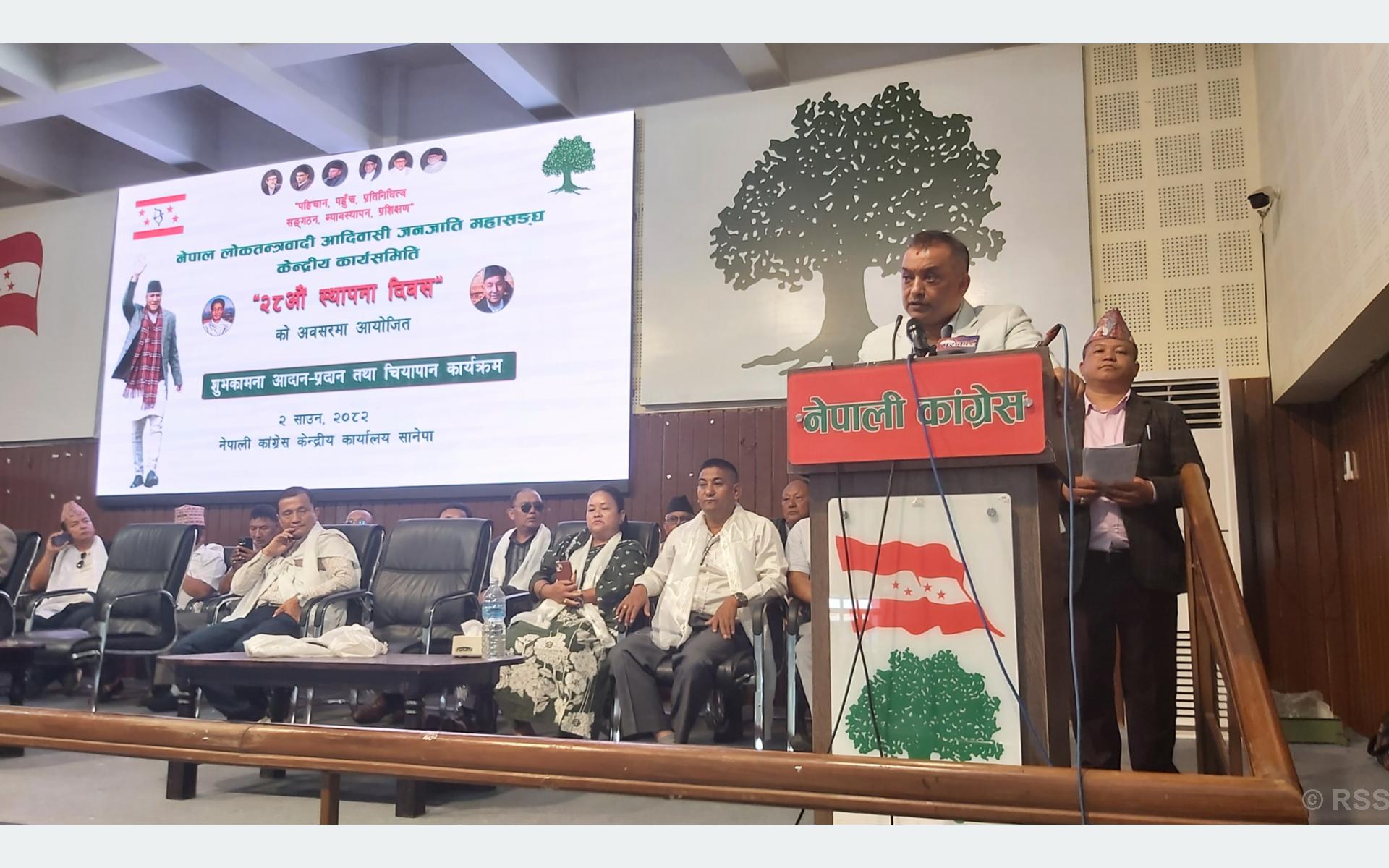 नेपाली कांग्रेसका सहमहामन्त्री भीष्मराज आङ्दम्वेले समग्र मुलुक, नेपाल र नेपालीका लागि सङ्घर्ष गरेको आदिवासी जनजाति समुदायले आफ्नै अधिकारका लागि लड्नुपर्नेमा जोड दिए । उनले संविधानसभाबाट बनाइएको संविधानसँग हरेक जातजातिको जीवन जोडिएको बताउँदै मुलुक र संविधानको रक्षा गर्दै लोकतान्त्रिक गणतन्त्र नेपाललाई स्थिरताको दिशामा लैजानुपर्ने धारणा राखे ।