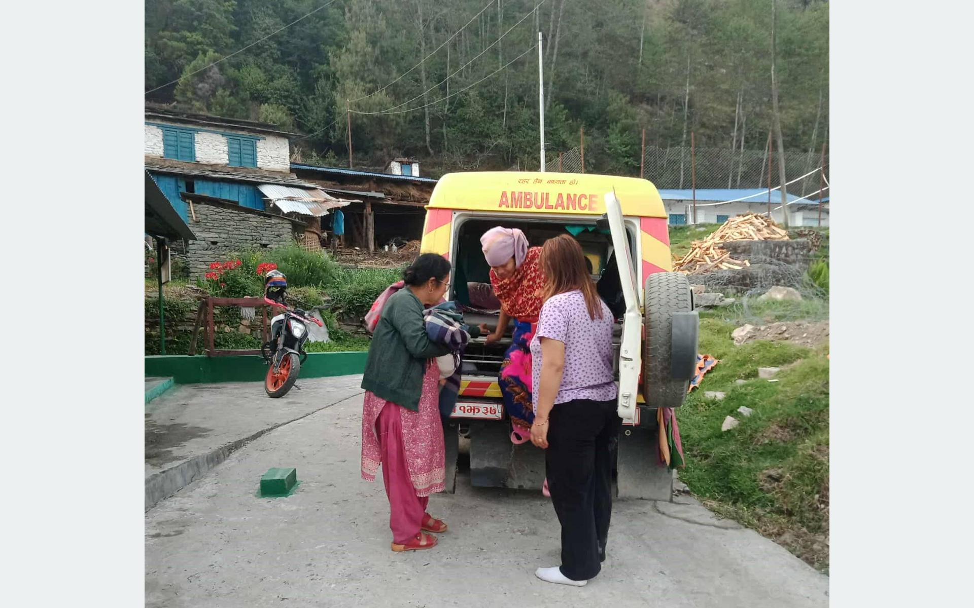 यहाँ आर्थिक वर्ष विसं २०८१/८२ मा गाउँपालिकाले एम्बुलेन्स सेवा सुरु गरेको थियो । गाउँपालिका अध्यक्ष राजुप्रसाद आचार्यले लक्षित वर्गलाई निःशुल्क र अन्यलाई सशुल्क सेवा दिने गरिएको बताए । त्यस क्रममा निःशुल्कतर्फ गर्भवती र सुत्केरी ७० जना, ज्येष्ठ नागरिक ९९, गरिब र असहाय ११०, अपाङ्गता भएका पाँच र आर्थिक अवस्था कमजोर भएका अन्य ४३ जनाले सेवा लिएको गाउँपालिकाले जनाएको छ ।