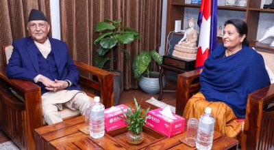 काठमाडौं । नेकपा एमालेका अध्यक्ष केपी शर्मा ओली र हालैमात्र एमालेको राजनीतिमा फर्किएको घोषणा गरेकी पूर्वराष्ट्रपति विद्यादेवी भण्डारीबीच आज भेटवार्ता हुनेभएको छ ।