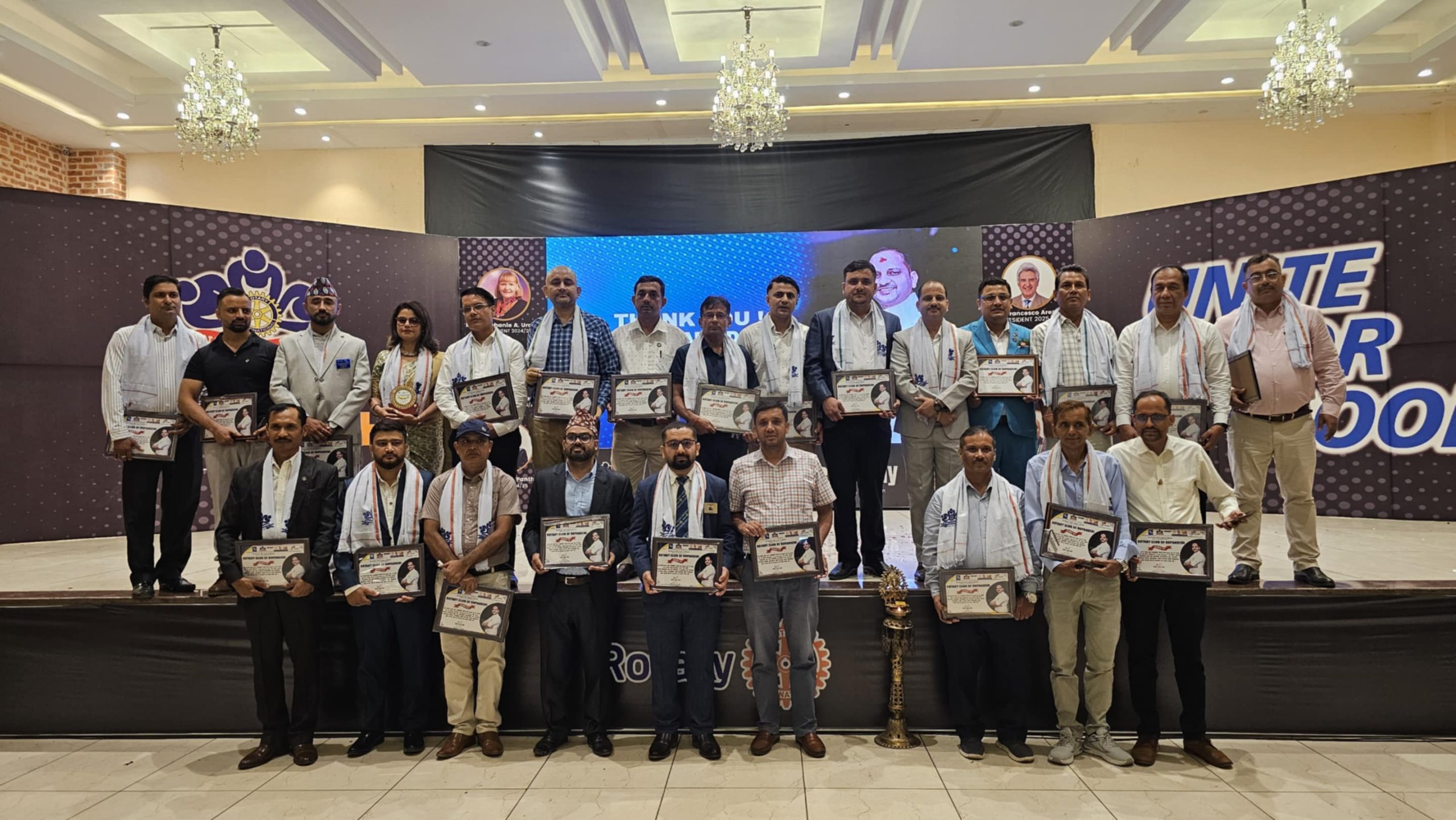 बुटवल । रोटरी क्लब अफ रुपन्देहीको १४ औँ पदस्थापन समारोह सम्पन्न भएको छ । शुक्रवार एक समारोह बिच क्लबको चौधौँ पदस्थापन कार्यक्रम सम्पन्न भएको हो । क्लबका वर्ष २०२४/२५ का अध्यक्ष प्रमोद पन्थी नेतृत्वका पदाधिकारीले वर्तमान अध्यक्ष कृष्ण गौतम लगायतका पदाधिकारीहरूलाई पद हस्तान्तरण गरेका हुन् ।