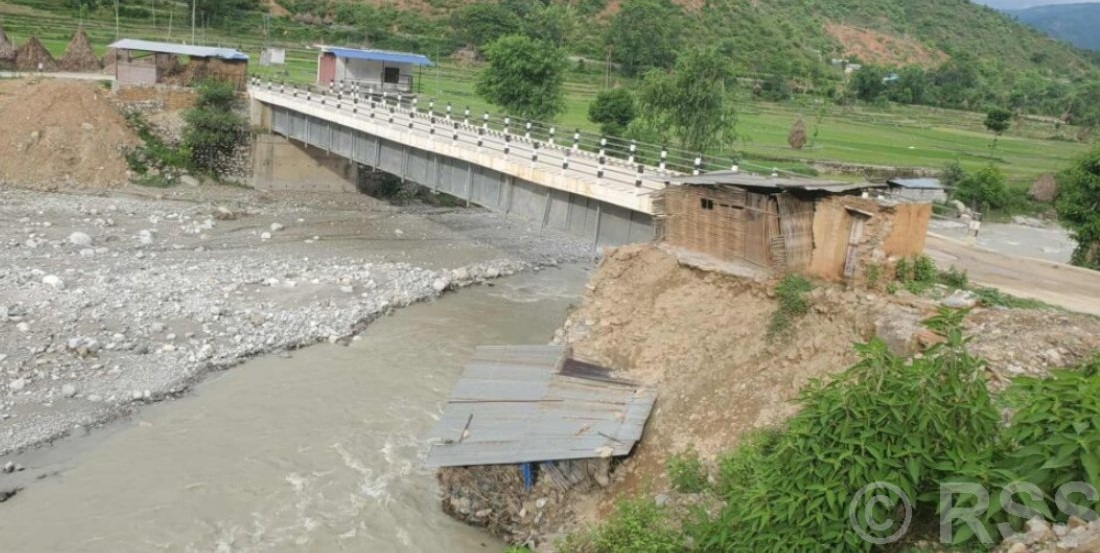रामेछाप । रामेछाप सदरमुकाम मन्थलीसहित रामेछापका विभिन्न चार वटा पालिका जोडने र जिल्लालाई काठमाडौंसम्म जोड्ने वैकल्पिक मार्गका रूपमा रहेको भटौली खोलाको पक्की पुल खोलाले कटान गरेपछि जाेखिममा परेकाे छ ।
