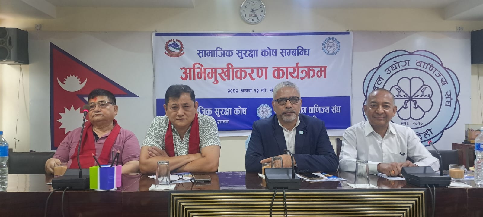 बुटवल । बुटवलमा उद्योगी व्यवसायीलाई सामाजिक सुरक्षा कोषका विषयमा अभिमुखीकरण गरिएको छ । बुटवल उद्योग वाणिज्य सङ्घ रुपन्देही र सामाजिक सुरक्षा कोष शाखा कार्यालय बुटवलको आयोजनामा आज सङ्घमा आबद्ध उद्योगी व्यवसायीलाई अभिमुखीकरण गरिएको हो ।