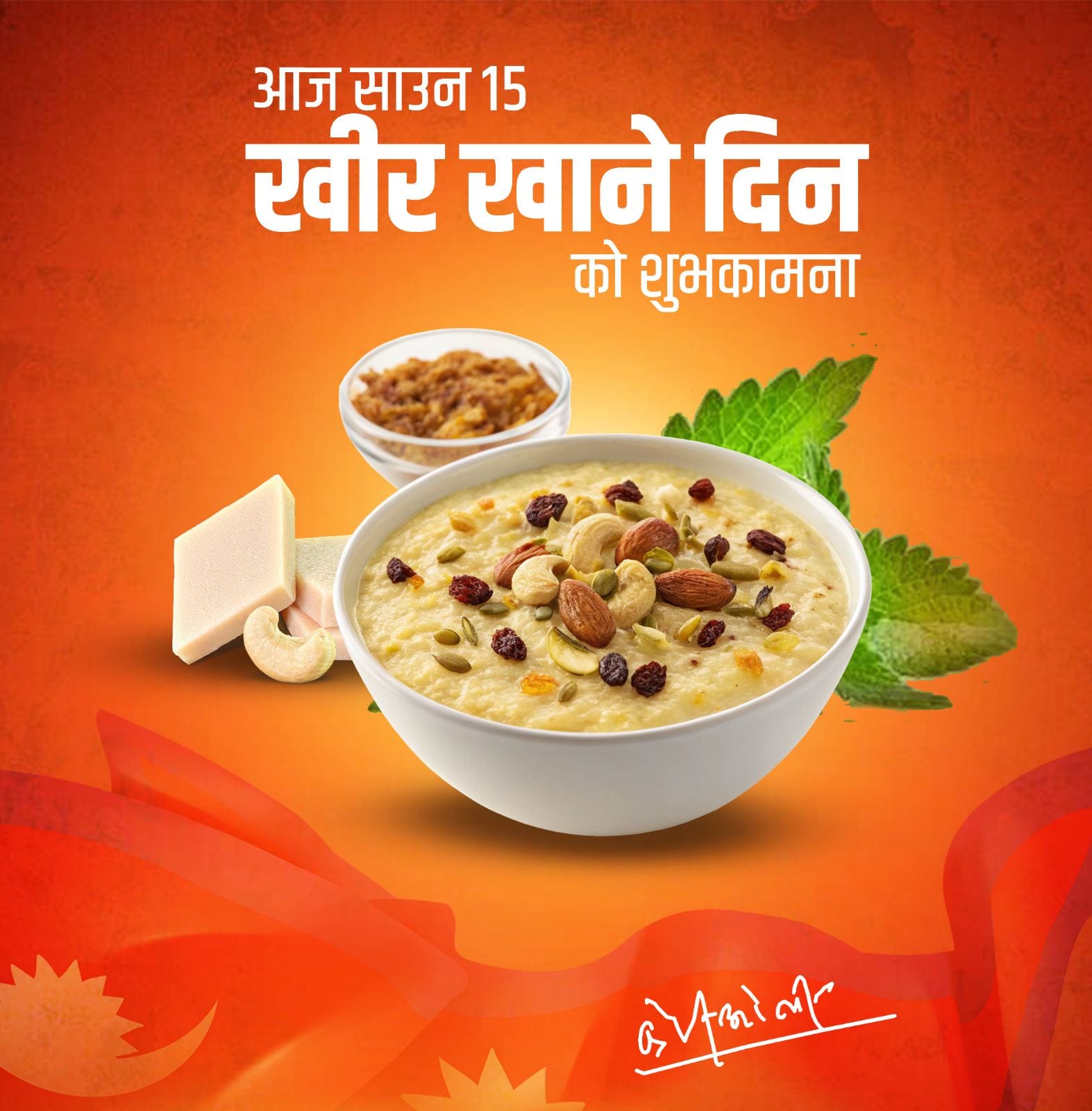 उनले लेखेका छन्- ‘आज साउन १५, खीर खाने परम्परागत पर्व । हाम्रा पूर्वजहरूले रोपाइँ सकेर साउन १५ को पर्व मनाउन सुरु गरेका थिए । पशुपालनको पुरानो संस्कृतिसँग यस पर्वको साइनो गाँसिएको छ । जसरी खीरलाई मिठासपूर्ण परिकारको रूपमा लिइन्छ, त्यसैगरी यस पर्वले नेपाली समाजको संस्कृति, सौहार्दता र सामूहिकताको मिठास बोकेको छ। शुभ साउन १५ !, सबैको जीवन खीरजस्तै मिठासपूर्ण होस् !