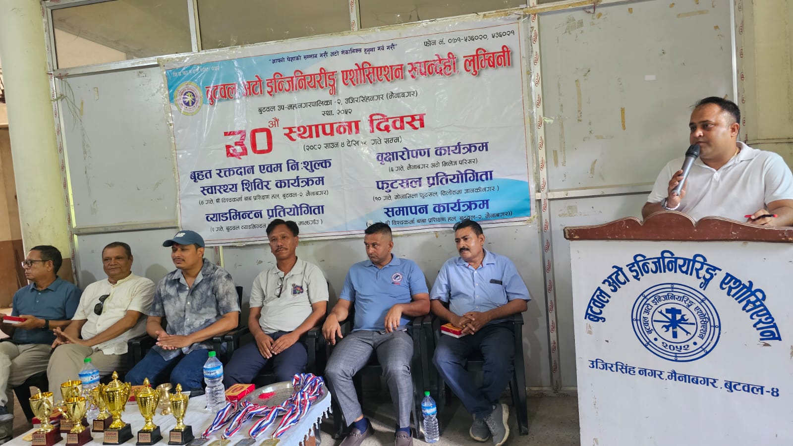 बुटवल । बुटवल अटो इन्जिनियरिङ एशोसियसन रुपन्देही लुम्बिनीले आफ्‌नो स्थापना दिवसको अवसरमा आयोजना गरेका विभिन्न रचनात्मक कार्यक्रमहरू समापन गरेको छ । अटो इन्जिनियरिङ क्षेत्रमा उत्कृष्ट नाम कमाएको संस्थाले साउन ४ गतेबाट स्वास्थ्य शिविर तथा रक्तदान कार्यक्रम सहित सुरु गरेको स्थापना दिवसका कार्यक्रम बिहीबार समापन गरेको हो ।