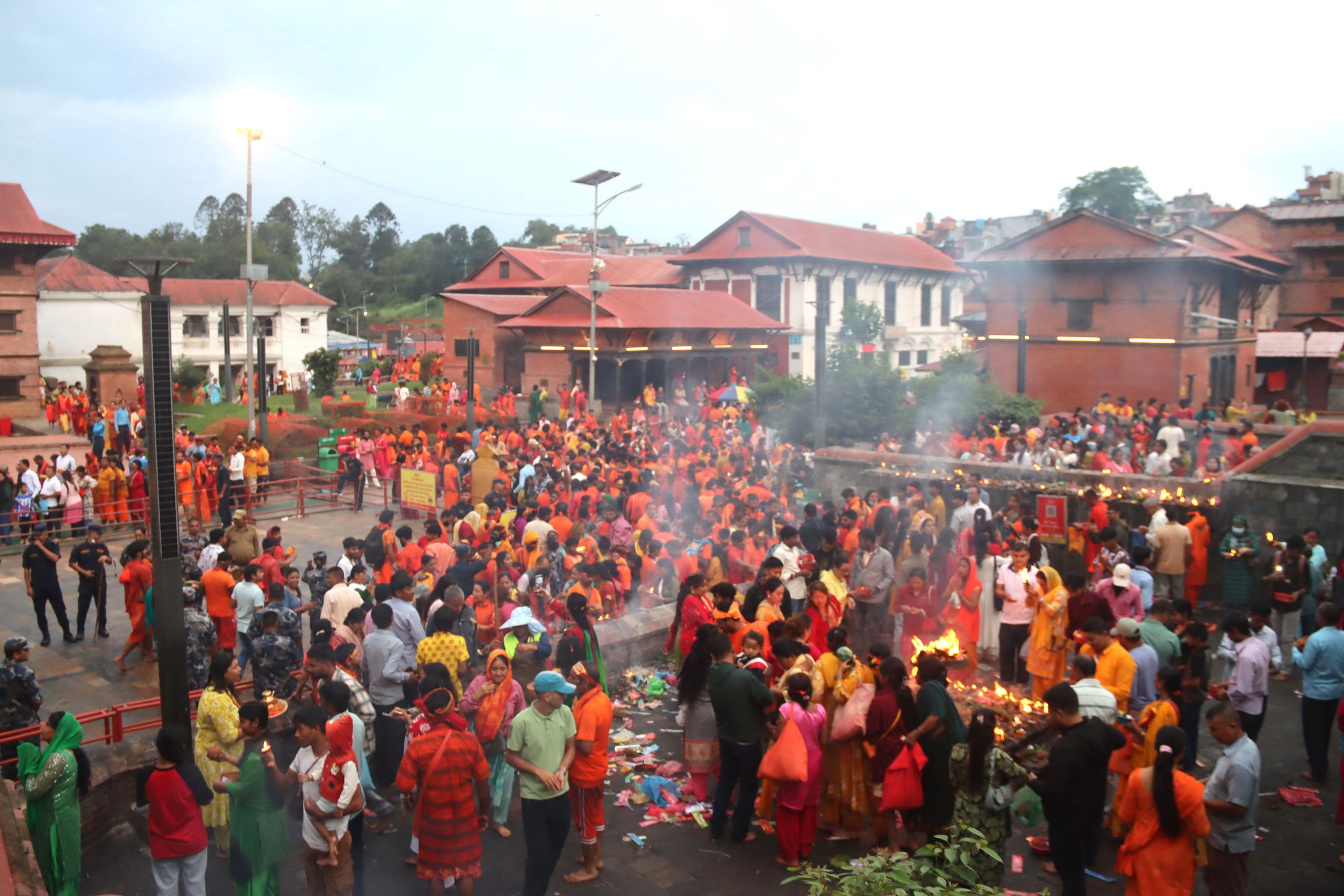 पशुपति क्षेत्रमा अहिले पनि हजारौँ भक्तजन पूजा, आराधना एवं दर्शनका लागि लाममा बसेका छन् । साउन महिना र सोमबार भगवान् शिवको प्रिय महिना एवं बार भएकाले शिवालयमा पूजा, आराधना गर्ने वैदिक कालदेखिको परम्परा छ । यस वर्ष साउन महिनामा चारवटा सोमबार परेका छन् ।