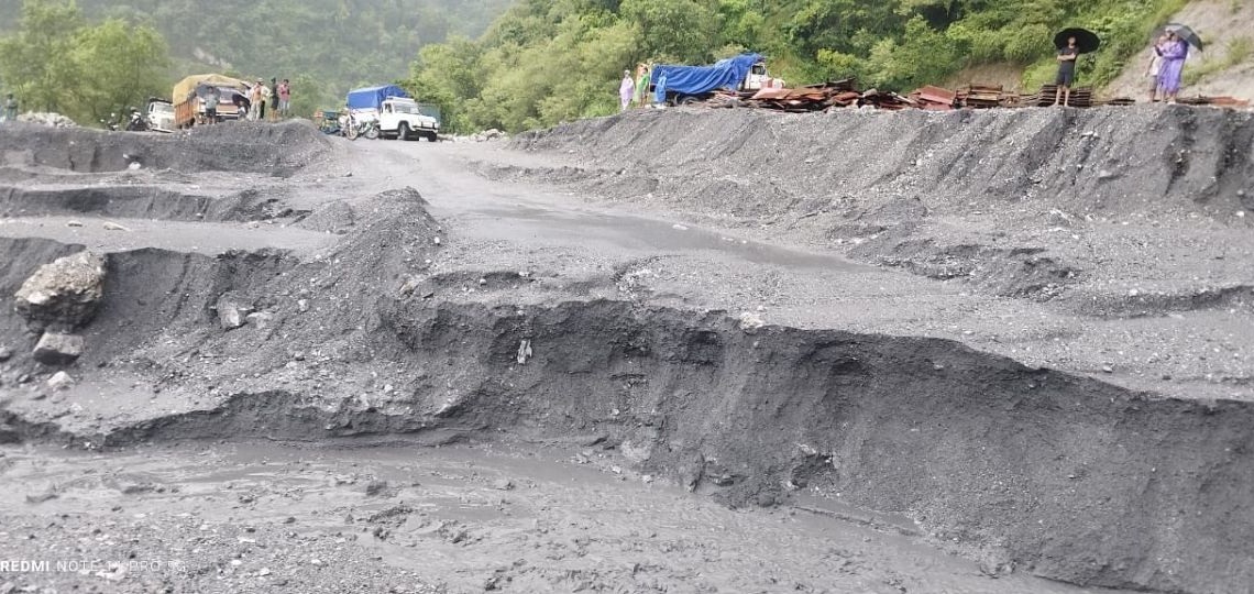 गुल्मी । अविरल वर्षाका कारण गुल्मीको रिडी-वामीटक्सार सडक अवरुद्ध बनेको छ । सो सडकखण्डअन्तर्गत सत्यवती गाउँपालिका-६ स्थित डहरे खोलामा बाढी आएपछि आज बिहानदेखि पूर्ण रुपमा अवरुद्ध बनेको जिल्ला प्रहरी कार्यालयका सूचना अधिकारी गङ्गाबहादुर सारुले जानकारी दिए ।
