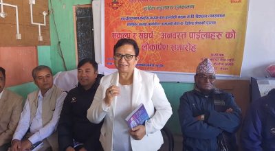 पार्टीद्वारा आज आयोजित जिल्ला भेला एवं तीज विशेष कार्यक्रममा उनले जनयुद्धदेखि हालसम्मको अवस्थालाई संश्लेषण गरेर समाजवादी आन्दोलनको खाका तयार गर्न माओवादी नेतृत्व लागेको बताइन ।