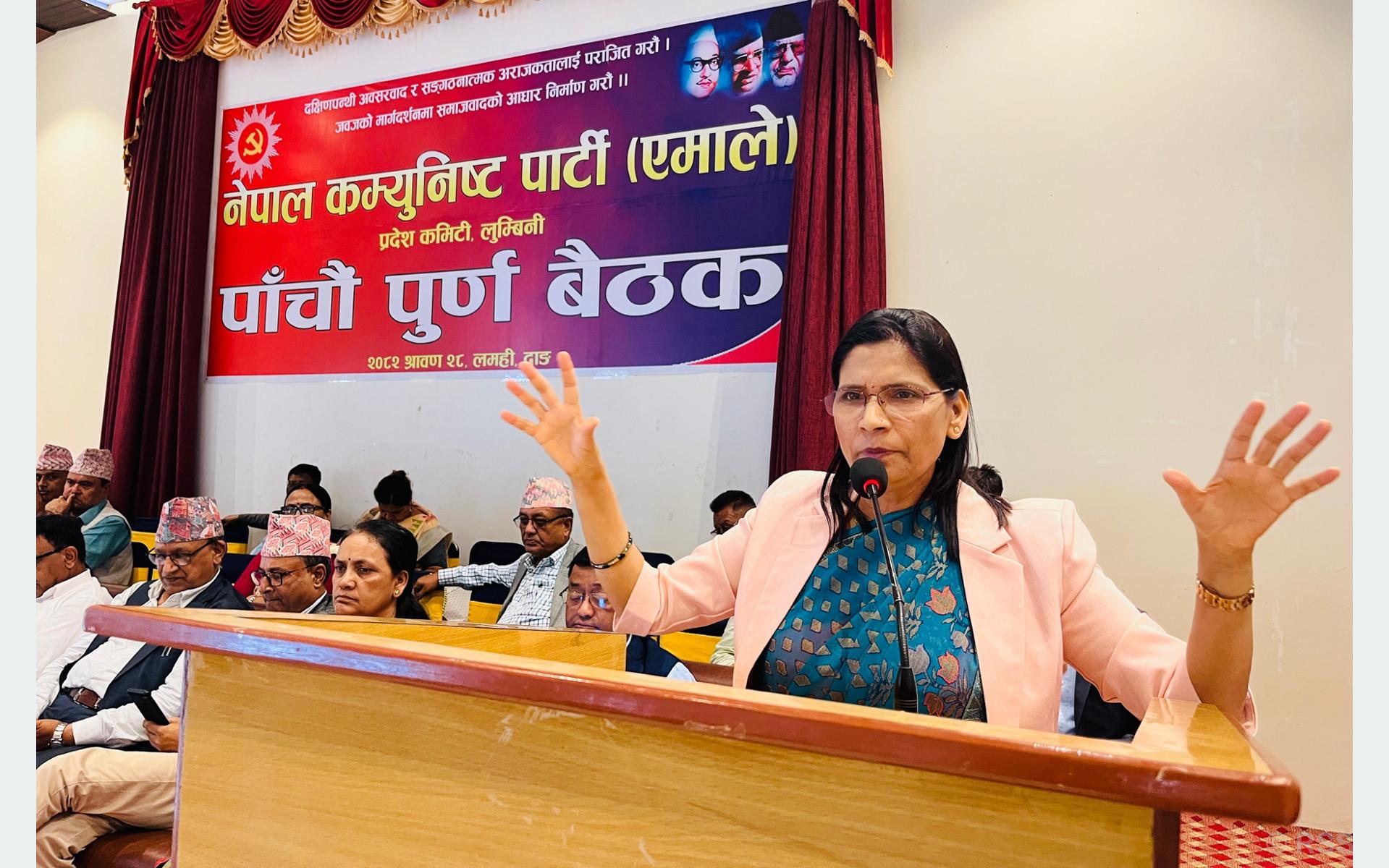 बैठकलाई सम्बोधन गर्दै पार्टी केन्द्रीय सचिव तथा लुम्बिनी प्रदेश इञ्चार्ज पद्मा अर्यालले रुपन्देही–३ को उपनिर्वाचनको नतिजाले २०८४ सालको निर्वाचनको सन्देश दिने भएकाले कार्यकर्तालाई जितका लागि दृढतापूर्वक लाग्न निर्देशन दिइन् ।