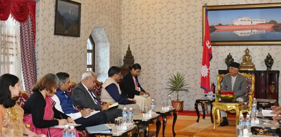 काठमाडौं । दुई दिने नेपाल भ्रमणमा आएका भारतीय विदेश सचिव विक्रम मिश्रीले प्रधानमन्त्री केपी शर्मा ओलीसँगको भेटपछि शीतल निवास पुगेर राष्ट्रपति रामचन्द्र पौडेलसँग शिष्टाचार भेट गरेका छन्।