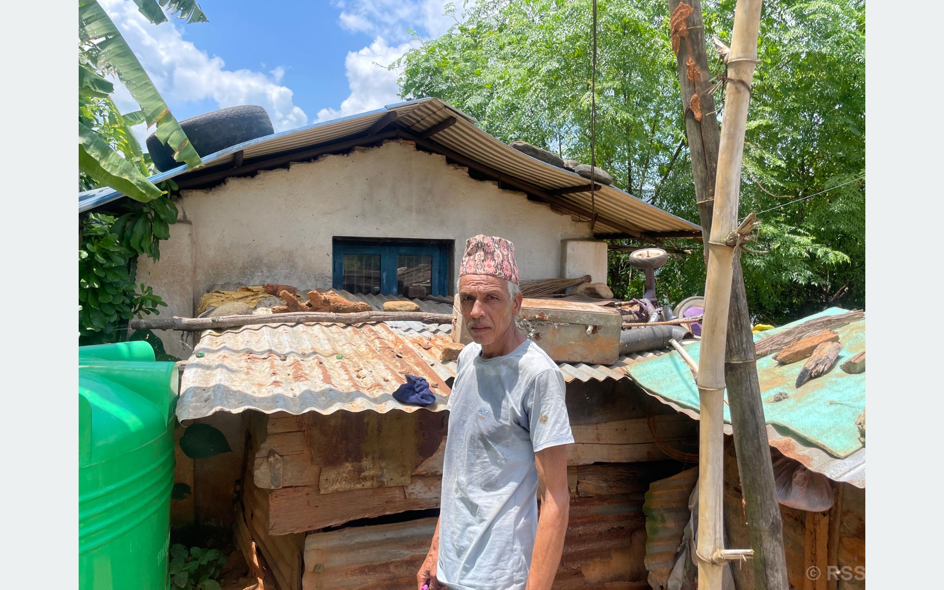 गोरखा । ढिलो गरी वर्षा भएका कारण साउन महिना सकिन लाग्दा पनि गाउँले किसानहरुलाई माना रोपेर मुरी उब्जाउने चटारो छ । कोही धानको रोपाइँमा, कोही कोदो रोपाइँमा त कोही मकै भित्र्याउनमा । गोरखा नगरपालिका–११ तेह्रकिलो बजारभन्दा दुई कान्ला तल सानो टहरोमा बस्ने ५५ वर्षका चेतबहादुर कुसुन्डालाई भने न रोपाइँको ध्याउन्न, न त बारीमा मकै सुक्ला भन्ने पीर । आफूजस्तै दिनरात श्रम गरेर खाने दौँतरीहरुसँग उनको समय बित्छ ।