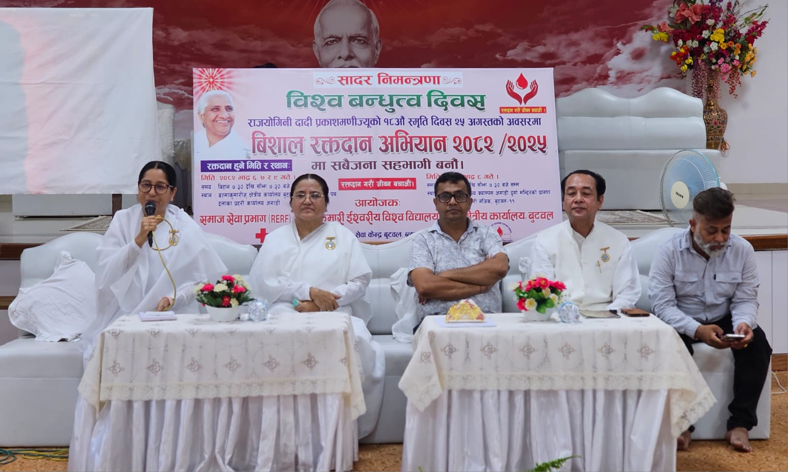 विश्व बन्धुत्व दिवस तथा ब्रह्माकुमारी ईश्वरीय विश्वविद्यालयकी पूर्व अन्तर्राष्ट्रिय मुख्य प्रशाशिका राजयोगिनी दादी प्रकाशमणीको १८ औं स्मृति दिवसको अवसरमा भदौ ६ गतेदेखि ९ गतेसम्म रक्तदान महादान अभियान सञ्चालन हुने भएको हो ।