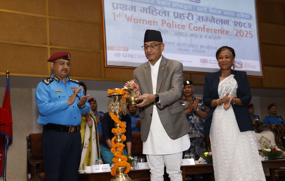 काठमाडौं । ‘साझा जिम्मेवारी समान प्रतिबद्धताः प्रहरी सेवामा सशक्त भूमिका’ भन्ने मुल नाराका साथ दुई दिवसीय “प्रथम महिला प्रहरी सम्मेलन, २०८२” शुभारम्भ भएको छ । नेपाल प्रहरी प्रधान कार्यालय नक्सालमा बिहीबार आयोजित विशेष समारोहबीच गृहमन्त्री रमेश लेखकले पानसमा दीप प्रज्वलन गरी उक्त सम्मेलनको उद्‍घाटन गरे ।