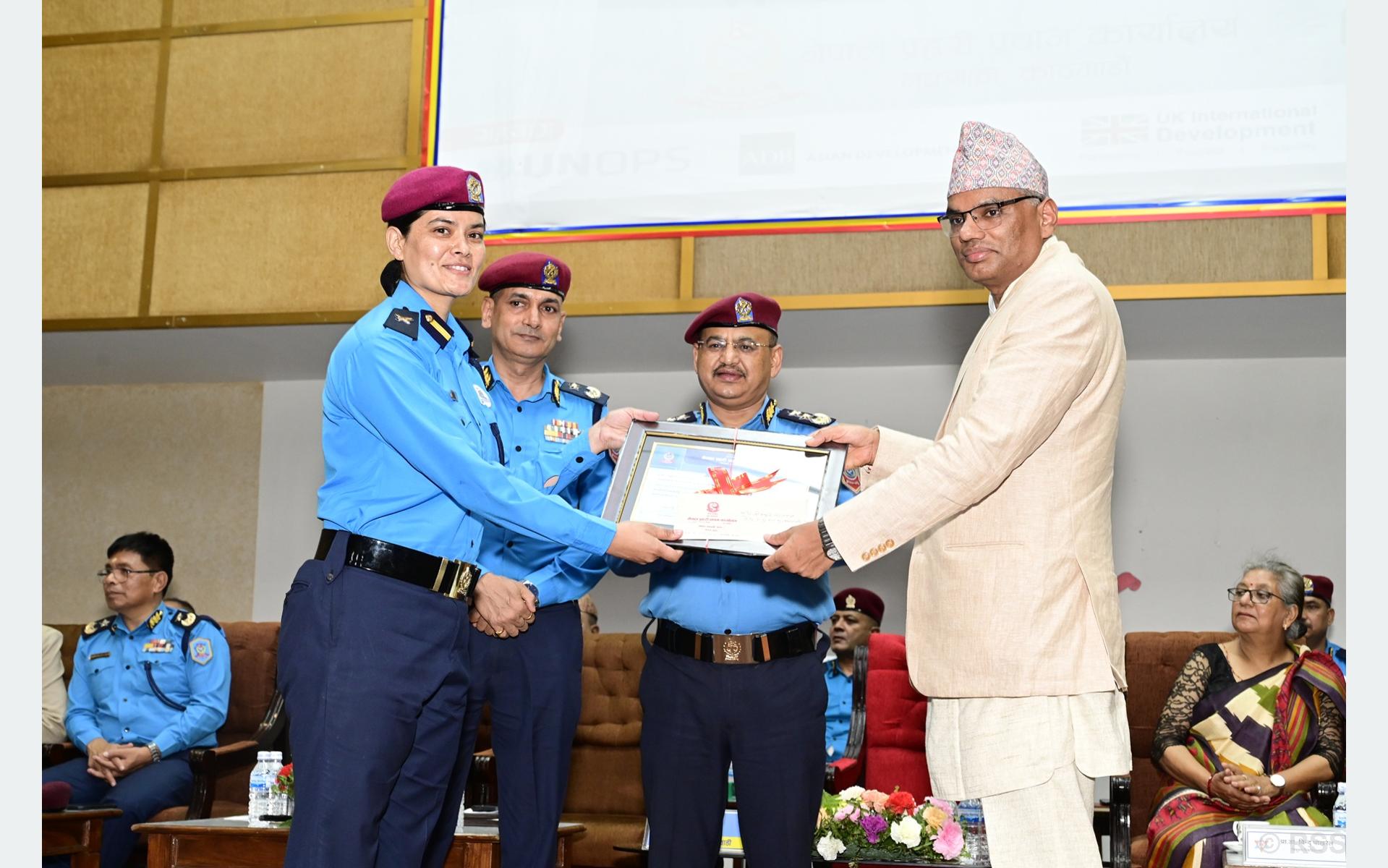 आज सम्मेलनको समापनका अवसरमा विभिन्न विधामा उत्कृष्ट भूमिका निर्वाह गर्ने महिला प्रहरी कर्मचारी, सम्मेलनलाई सफलतापूर्वक सम्पन्न गर्न योगदान पु¥याउने व्यक्ति, विभिन्न सङ्घसंस्थालाई कदरपत्र, पुरस्कार एवं प्रशंसापत्र प्रदान गरिएको थियो ।