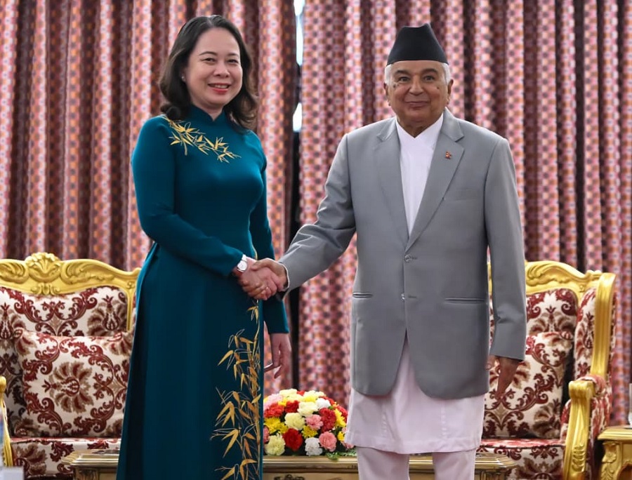 काठमाडौं । राष्ट्रपति रामचन्द्र पौडेलसँग नेपाल भ्रमणमा रहेकी समाजवादी गणतन्त्र भियतनामका उपराष्ट्रपति वो थि आन्ह सुआनले आज शिष्टाचार भेट गरेकी छिन्।