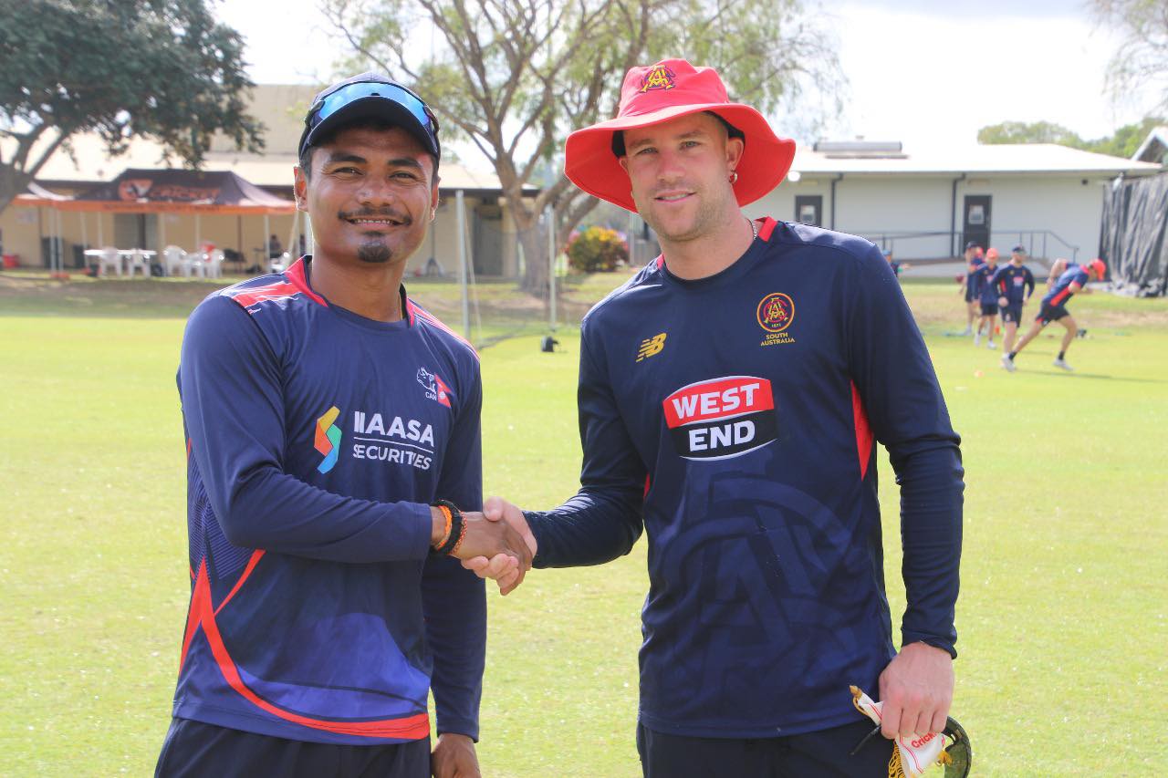काठमाडौं । अष्ट्रेलिया भ्रमणमा रहेको नेपाली राष्ट्रिय क्रिकेट टिमले आज साउथ अष्ट्रेलियासँग दुई टी-२० अभ्यास खेल खेल्दैछ । पहिलो खेल बिहान ५:१५ बजे सुरु भइसकेको छ । टस जितेर साउथ अष्ट्रेलियाले फिल्ड रोजेपछि नेपाल ब्याटिङ गरिरहेको छ । पहिलो खेल सकिएलगत्तै नेपालले सोही टिमसँग बिहान ९:१५ बजे दोस्रो खेल खेल्नेछ ।