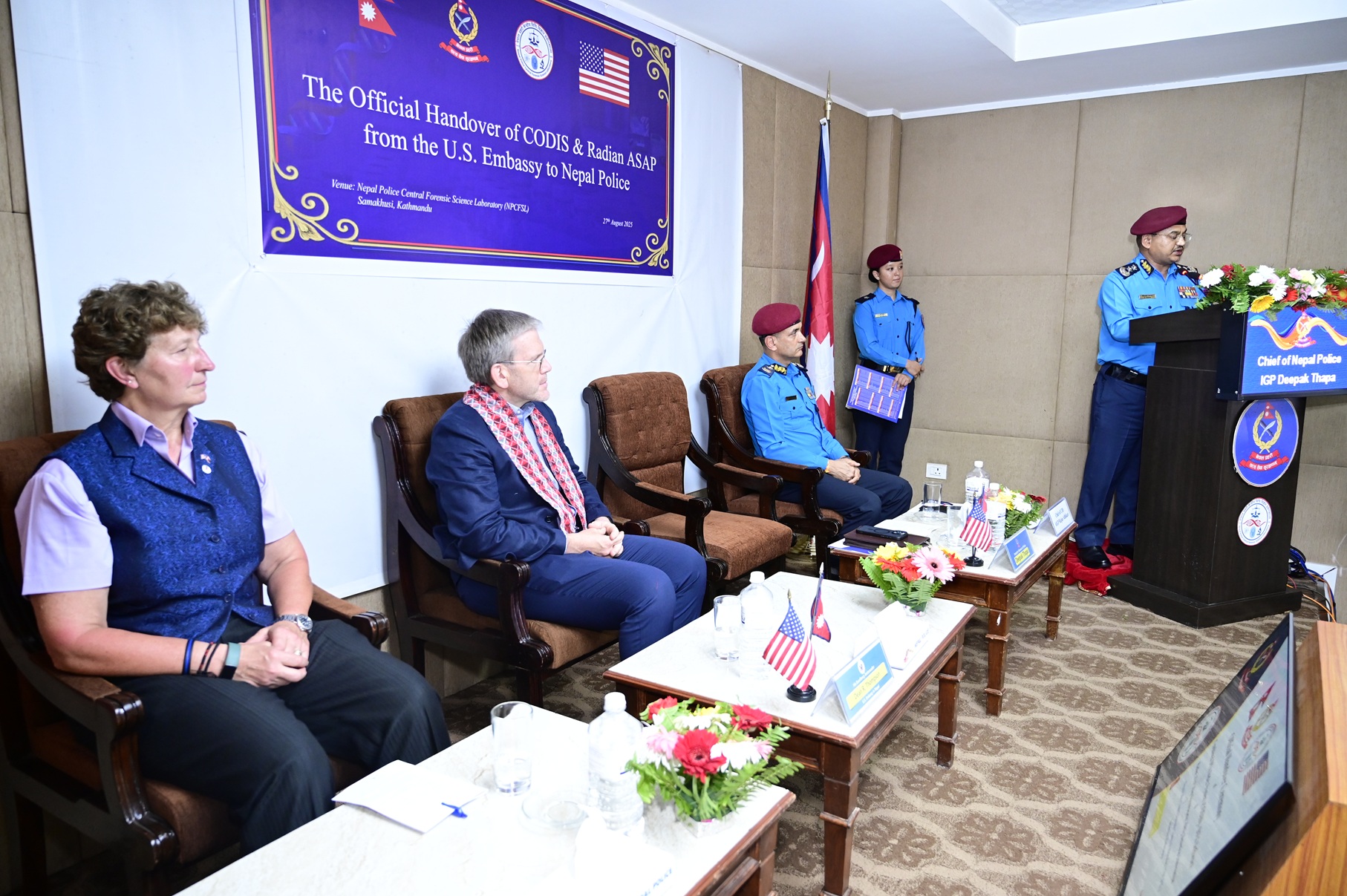 काठमाडौं । अमेरिकाले नेपाल प्रहरीलाई अनुसन्धान एवं तहकिकातका निम्ति उपकरण तथा तिनमा प्रयोग हुने प्रविधि प्रदान गरेको छ । बुधबार प्रहरी महानिरीक्षक दीपक थापाको उपस्थितिमा नेपालका लागि अमेरिकाका राजदूत डिन आर थम्सनले नेपाल प्रहरी केन्द्रीय विधिविज्ञान प्रयोगशालालाई ती उपकरण हस्तान्तरण गरेका हुन ।