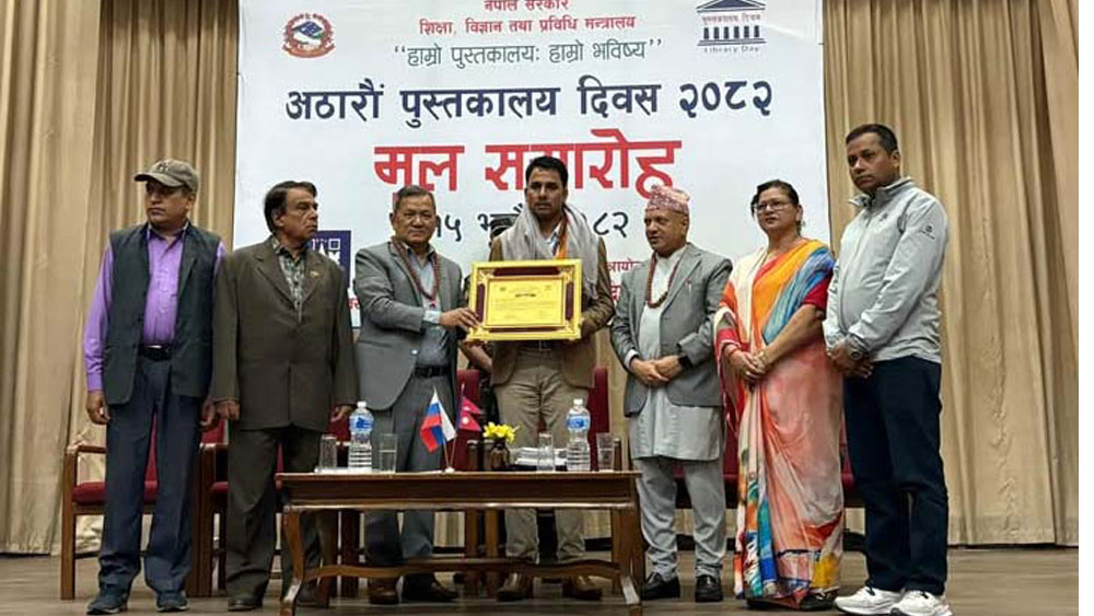 यसैगरि आजै अठारौँ पुस्तकालय दिवसका अवसरमा मन्त्रालयले काठमाडौँ महानगरपालिका–१४ का गृहमाननसिंह श्रेष्ठलाई उत्कृष्ट पुस्तकालय अभियन्ता तथा गोकर्णेश्वर नगरपालिका–७ का जगदीशचन्द्र अर्याललाई उत्कृष्ट पुस्तकालयकर्मीका रूपमा सम्मान गरेको छ ।
