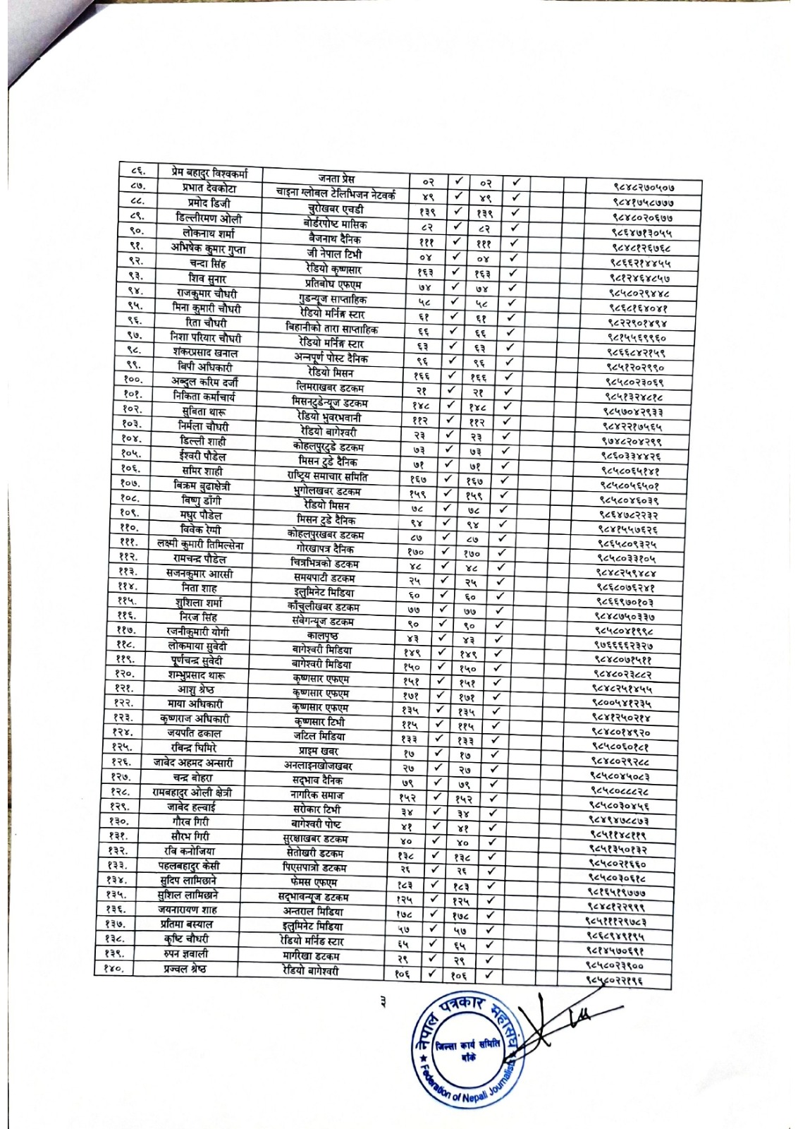 नेपालगन्ज । पत्रकार महसंघ बाँके शाखा अन्तर्गत साबिक २४२ सदस्यहरु मध्य १८७ जनाले आफ्नो सदस्यता नविकरण गरेका छन् । महासंघको पटक पटक जारी सूचनापछि भाद्र १५ गते दिइएको अन्तिम समयसीमा सम्ममा १८७ जनाले सदस्यता नविकरण गरेको महासंघ बाँके शाखाले जानकारी दिएको छ ।