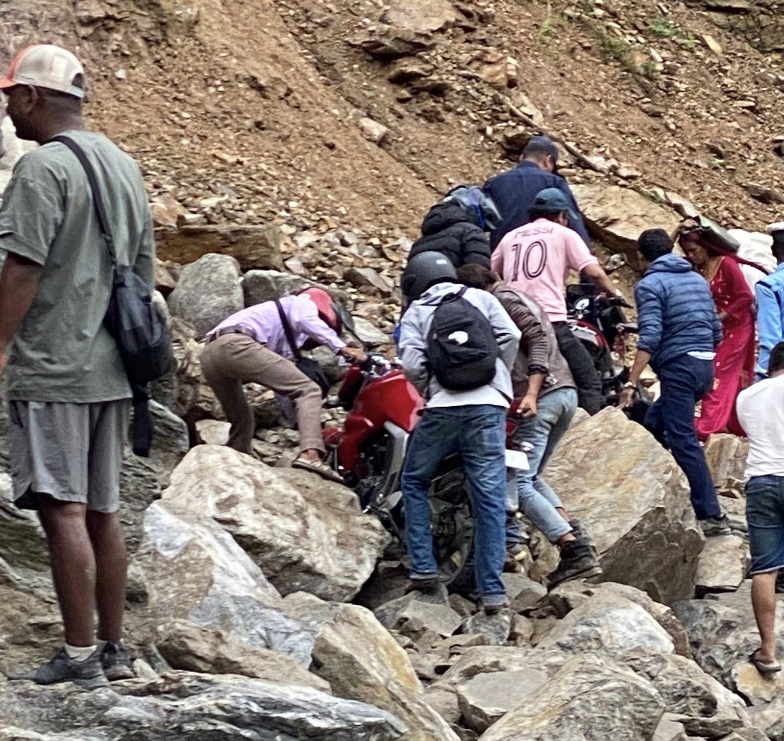जुम्ला सडक डिभिजन कार्यालयका प्रमुख दीपेन्द्र चौधरीले सडकमा खसेका ढुङ्गा फुटाउन नसकिएको बताए । “ढुङ्गा फुटाउन नेपाली सेनाको टोली मान्मबाट त्यसतर्फ जाँदैछ”, उनले भने । वर्षा भइरहेका कारण सडक खुलाउन बाधा पुगेको उनले बताए ।