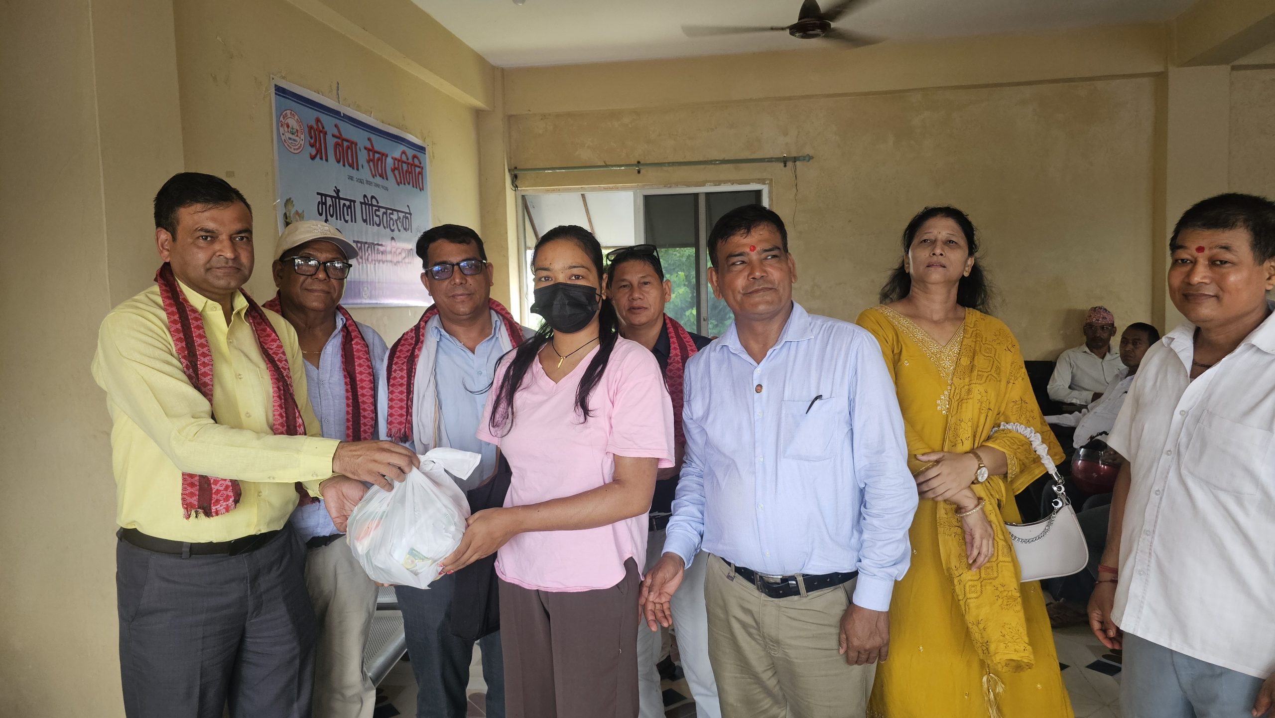 बुटवल । श्री नेवा: सेवा समिति बुटवलले मृगौला पीडितहरूलाई खाद्यान्न सहयोग गरेको छ । समितिले शनिबार बुटवल-११ माझगाउँस्थित कार्यालयमा आयोजित कार्यक्रममा करिब एक लाख १५ हजार रुपैयाँ बराबरको चामल, दाल, चिउरा लगायतका खाद्यान्न सामग्री हस्तान्तरण गरेको हो ।