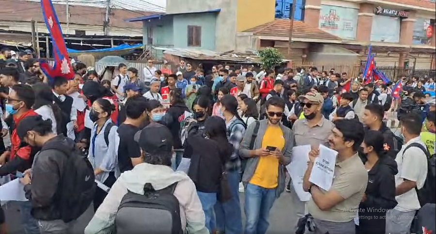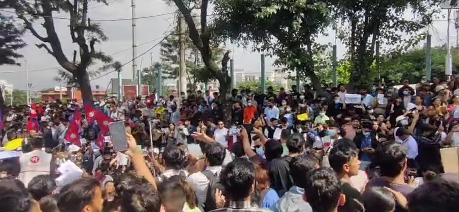 सोमबार बिहानैदेखि माइतीघर मण्डलामा भेला भएका हुन्। कलेजको ड्रेस, किताब र स्कुल पोशाकमै आएका युवाहरुले विभिन्न नारा अंकित प्लेकार्ड बोकेर प्रदर्शन गरिरहेका छन्।