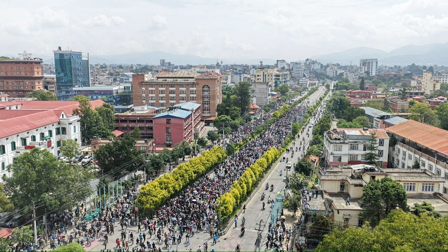 भ्रष्टाचार, नातावाद, कृपावाद र सामाजिक सञ्जालमा लगाइएको प्रतिबन्धविरुद्ध माइतीघरबाट सुरु भएको युवाहरूको जुलुस नयाँबानेश्वरतर्फ अघि बढेको छ।