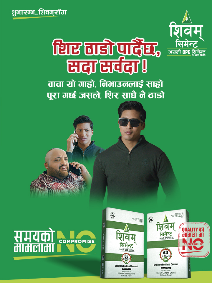 शिवम् सिमेन्टको यो अभियान केवल विज्ञापन मात्र नभएर समाजप्रतिको उत्तरदायित्व र जनचेतना अभिवृद्धिमा केन्द्रित छ । नो कम्प्रोमाइज भन्न जति सजिलो छ त्यतिनै व्यवहारमा पुरा गर्न गाह्रो छ, तर जसले पुरा गर्छ, उसको शिर सँधै ठाडो हुन्छ” भन्ने सन्देश मार्फत, शिवम् सिमेन्टले आफ्नो गुणस्तरमा कहिल्यै सम्झौता नगर्ने नीति झनै मजबुत रूपमा प्रस्तुत गरेको छ ।