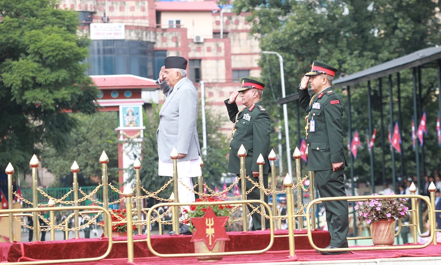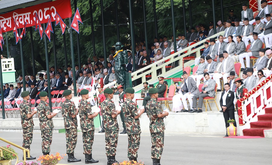 काठमाडौं । सैनिक मञ्च टुँडिखेलमा विशेष समारोह आयोजना गरेर संविधान दिवस तथा राष्ट्रिय दिवस २०८२ मनाइएको छ ।