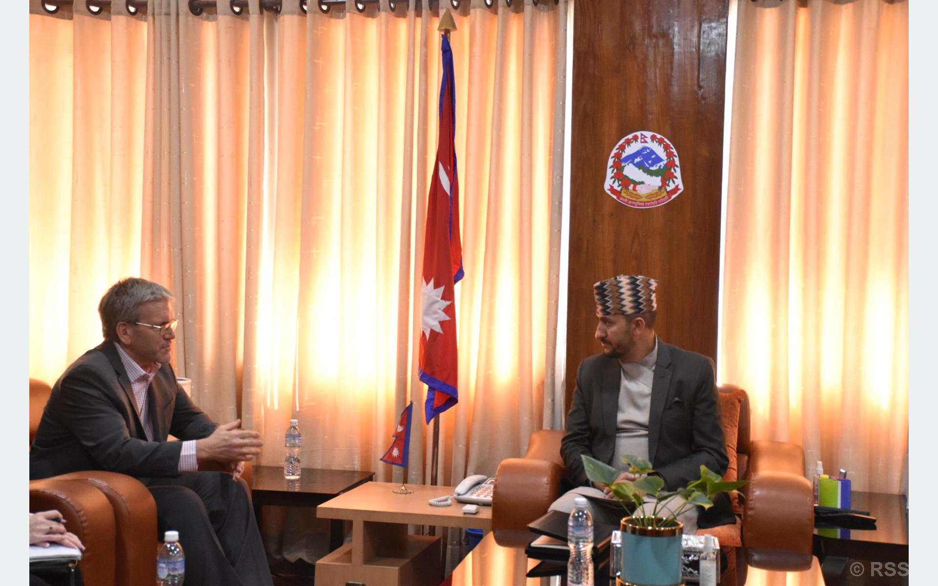 काठमाडौं । सञ्चार तथा सूचना प्रविधिमन्त्री जगदीश खरेलसँग नेपालका लागि संयुक्त राज्य अमेरिकाका राजदूत डिन आर थम्प्सनले शिष्टाचार भेट गरेका छन् ।