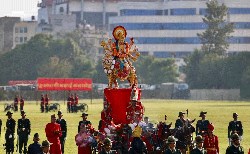 काठमाडौं । नेपाली सेनाले सैनिक मञ्च टुँडिखेलमा आज दिउँसो फूलपाती बढाइँको आयोजना गर्दैछ । राष्ट्रपति रामचन्द्र पौडेलको प्रमुख आतिथ्यमा हुने उक्त समारोहमा सेनाले राइफलबाट लहरे र एकठ्ठा तथा तोपबाट पनि बढाइँ गर्नेछ । सवैधानिक व्यवस्थाअनुसार राष्ट्रपति पौडेल नेपाली सेनाको परमाधिपति हुन ।