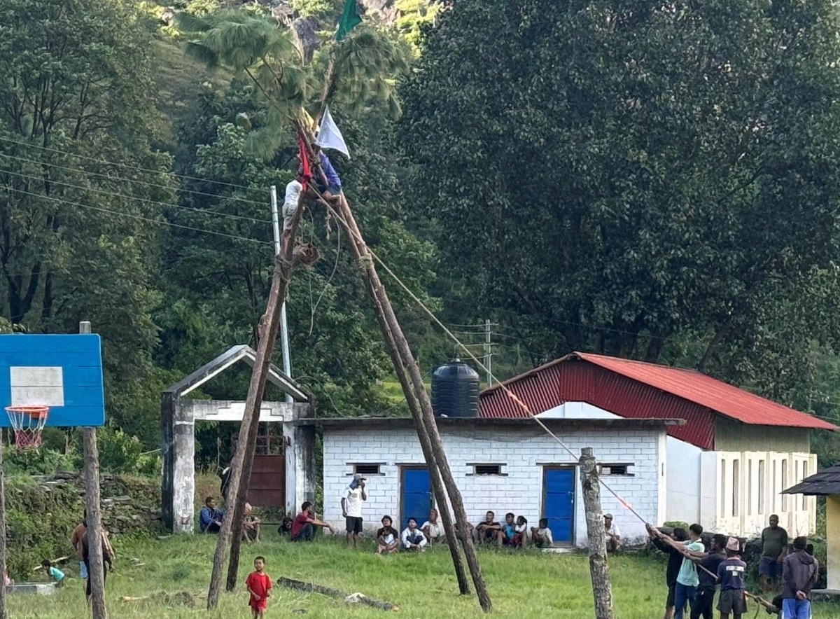‘बच्चा हुँदाको झल्को मेटाउन गाउँ आएर लिङ्गे पिङ हालेका छौँ,’ पोखराबाट दशैँ मनाउन धवलागिरी गाउँपालिका-७ हिलापोखरीस्थित जन्मथलोमा आएका खुम पुनले भने, –बाँसको लिङ्गो गाडेर, बाबियोको डोरी बुनेर हालेको पिङमा चचच… हुइइइइ गर्दै मच्चिनुको मज्जै बेग्लै हुन्छ ।’