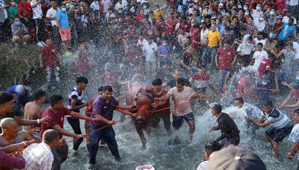 भक्तपुर । महानवमीका अवसरमा मनाइने भक्तपुरको परम्परागत ऐतिहासिक तथा सांस्कृतिक खःमेय् व्वाकेगु (राँगो दौडाउने) जात्रा आज मनाइँदैछ ।